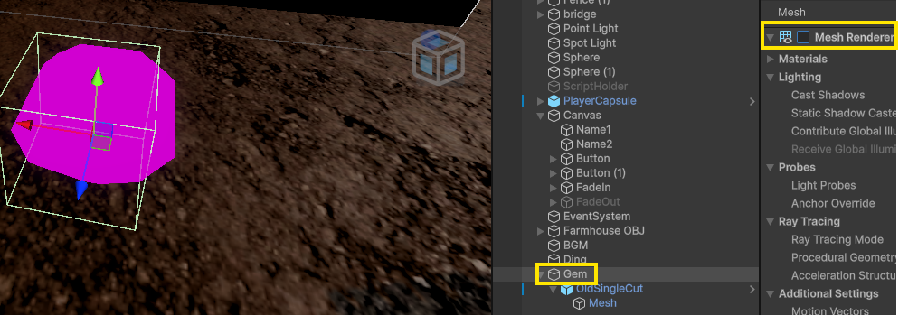 - 큐브의 메시 렌더러 체크 해제