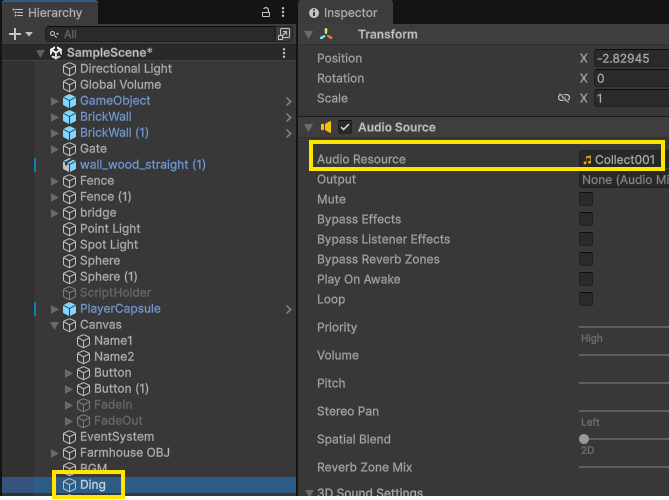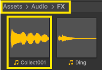 - 원래 있던 Ding 소리 대신 Collect001 효과음으로 변경