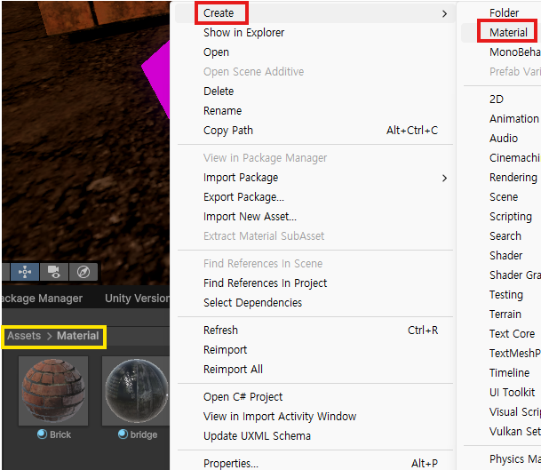 (1) Assets > Materials 폴더에 새로운 머티리얼 생성
