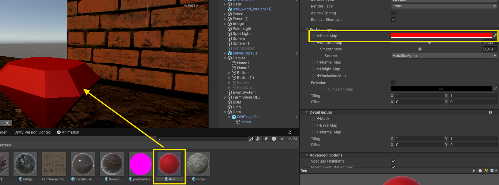 - 보석에 Red 머티리얼 드래그&드랍
