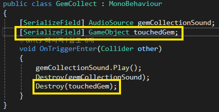 - 스크립트에서 보석 객체의 변수를 만들고 해당 객체를 Destroy 함수를 통해 없애주기
