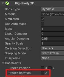 이기 때문에 Freeze Rotation으로 Z축을 막아줘야함