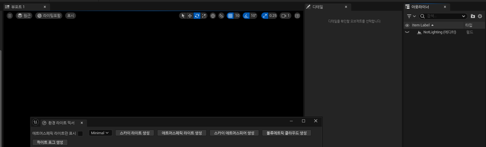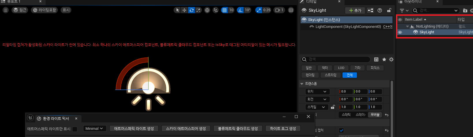 - 환경 라이트 믹서의 선택사항 전부 선택했을 경우: 하늘이 생김