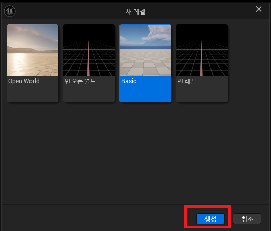 (3) 파일 > 새레벨을 클릭해 원하는 템플릿의 레벨 선택 - 생성