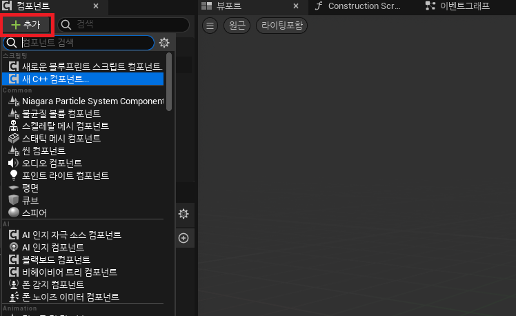 - 컴포넌트 창에서 추가 버튼 클릭해 원하는 컴포넌트 추가