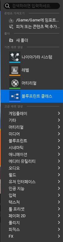 콘텐츠 브라우저 > 오른쪽 마우스 클릭 > 부모 클래스 선택