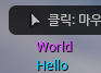 ex) 뷰포트에서 실행했을 때 화면에 Hello 글자 찍기