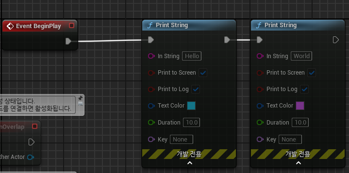 - 각 노드에 대한 활성화: 실행 핀을 끌어 다른 노드를 연결할 경우 활성화