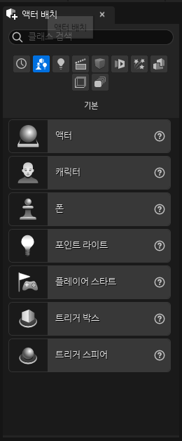 1) 액터 배치 창에서 레벨에 액터 세팅