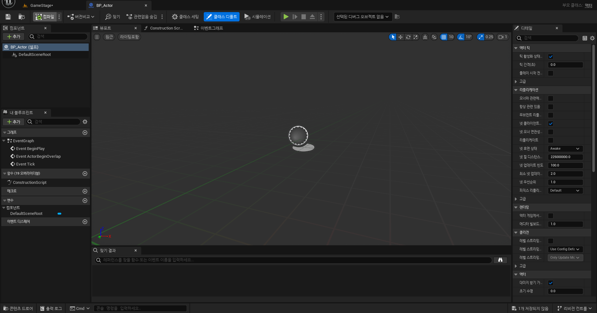 - 콘텐츠 브라우저에 생성된 블루프린트클래스의 이름을 변경하고(선택사항) 더블클릭하면 블루프린트 설정(?) 화면 생성
