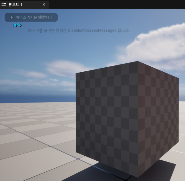 --> 해당 설정: Hello 글자를 화면 / 출력로그에 찍으면서 화면에 10초 동안 노출