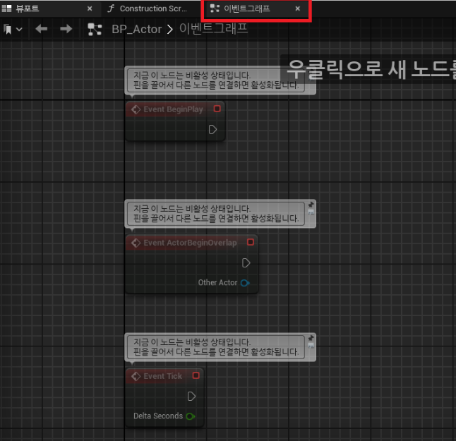 - Event Tick: 매 프레임마다 호출되는 이벤트