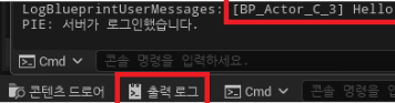 Print to Log: 출력로그 화면에 In String의 글자를 찍을지 말지 체크 유무로 판단