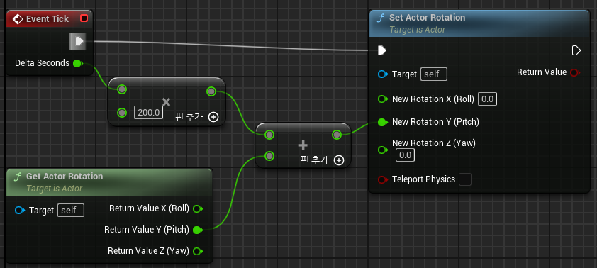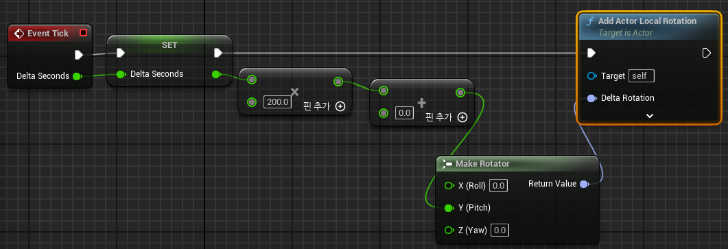 - Make Rotator 함수와 Add Actor Local Rotation함수를 통해 해결