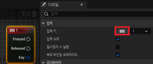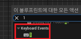 - 1을 검색해 Keyboard Events에 있는 1을 가져옴