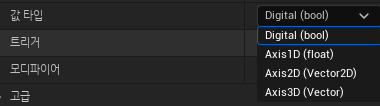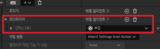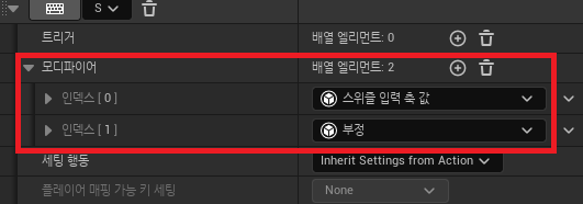- 모디파이어: 특정 입력 키에 대해 입력 데이터를 변형하는 기능(축 값에 대한 설정)