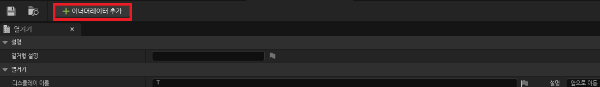 - 이너머레이터 추가 버튼을 클릭해 열거기를 추가하여 원하는 단축키를 설정해주고 설명에 어떤 키인지 작성해줍니다.