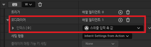 - W키와 동일하게 인덱스 0번에 스위즐 입력 축 값으로 설정