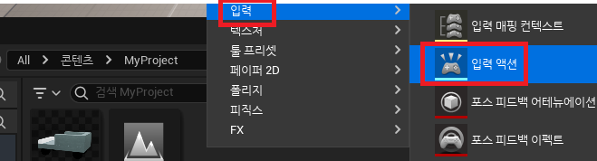 (1) 입력 매핑 컨텍스트에서 매핑할 입력 액션 선택하기