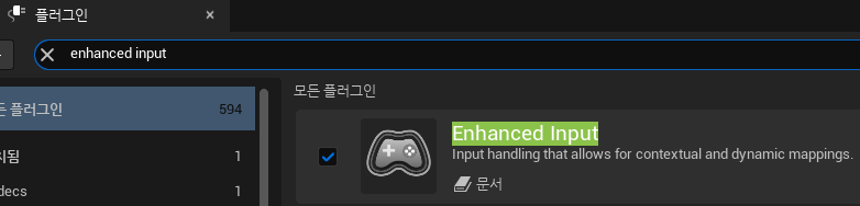 - 편집 > 플러그인 > Enhanced Input 이 설치되어있는지 확인